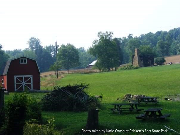 This photo is of the Morgan Cabin at Prickett’s Fort State Park only a few days after an arson incident where the old pioneer house was set on fire.