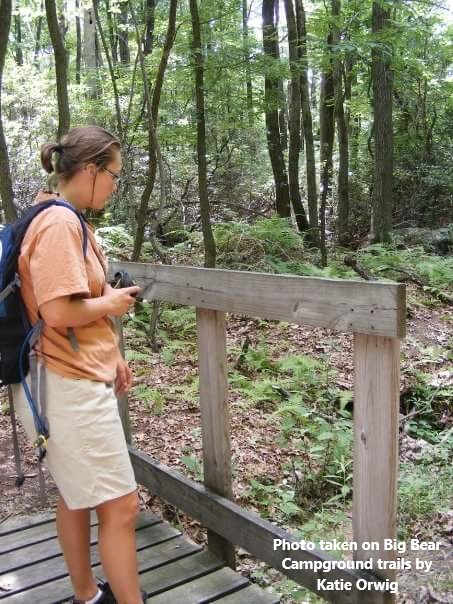 My friend, Becky, evaluating the crick below. If you look closely, you can see there is some water in there but the gap that remains in the land is the real reason for the footbridge